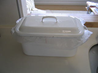 銅バスケットにたまったゴミや、生ごみを捨てています。